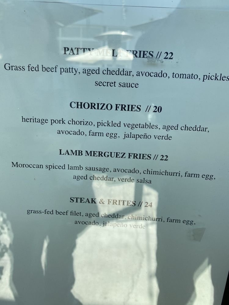 Summer lettuces, heirloom carrots, beets, radish, fennel, shaved apple, evoo, and pomelo-apple vinaigrette. Add a protein set: -Lemon, garlic, and herbed chicken breast with basil walnut pesto, avocado, mushroom, and goat cheese +$-Grass-fed beef patty with grilled onion, pickles, secret sauce, and french fry garnish +$-Grass-fed beef filet, chimichurri, serano tomatillo verde, avocado, aged cheddar, and farm egg +$