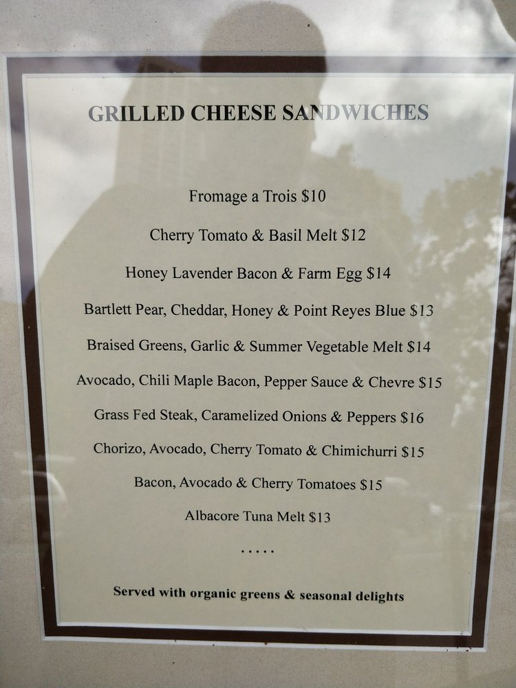 Organic chicken breast, avocado, mushroom, basil walnut pesto, arugula, lemon tarragon aioli, choice of aged Cheddar or goat cheese (or both Cheddar & goat cheese)