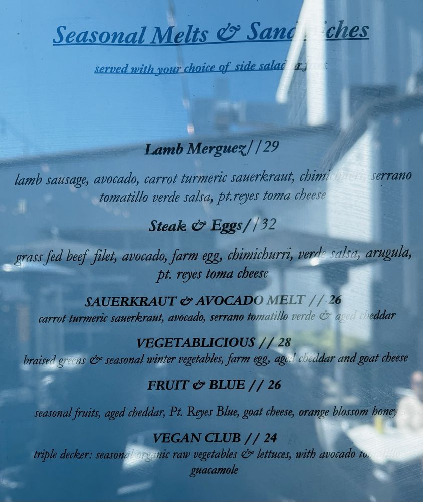 House-made Moroccan-spiced lamb sausage, avocado, chimichurri, carrot turmeric sauerkraut, farm egg, aged Cheddar, serrano tomatillo Verde